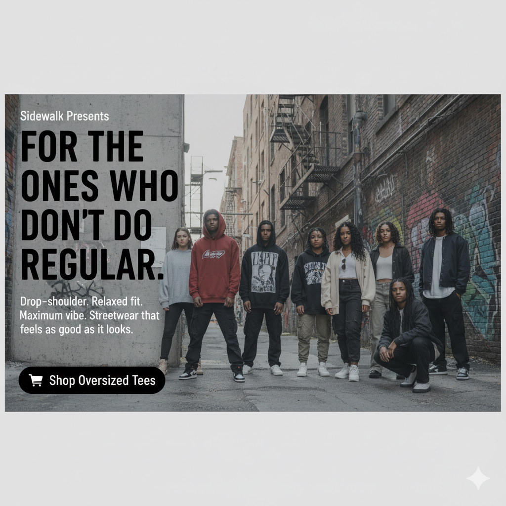 "New chapter: Sidewalk Essential Tees" Limited collection of premium single-color tees. Streetwear-inspired. Everyday approved.